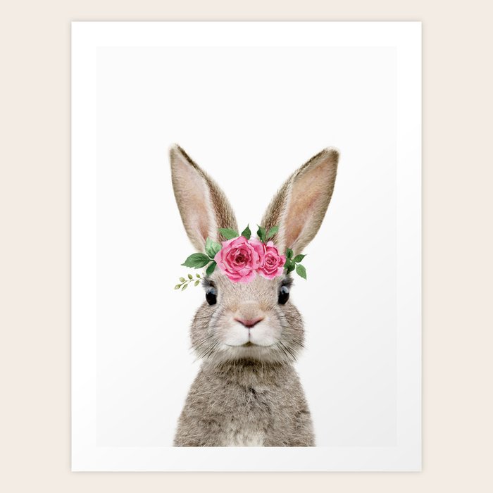 Baby Rabbit With Flower Crown Art Print By Amypetersonartstudio