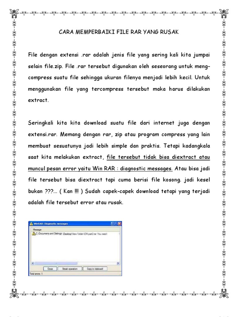 Cara Memperbaiki Sebuah File Zip Rar Yang Rusak Dan Selalu