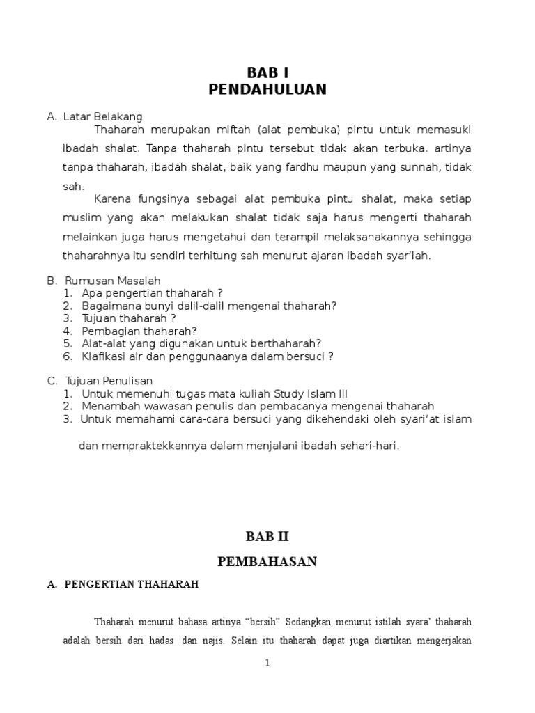 Makalah Thaharah Fungsi Dan Manfaatnya Docx Makalah