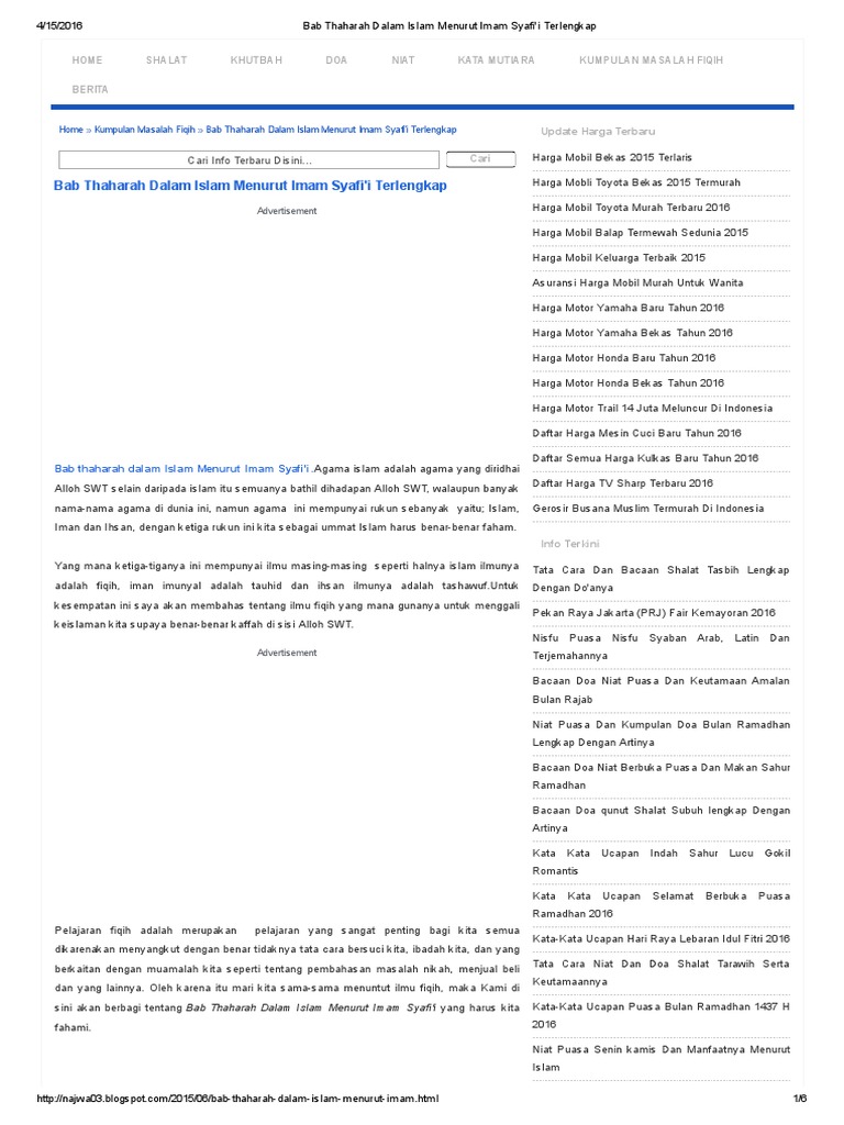 Bab Thaharah Dalam Islam Menurut Imam Syafi I Terlengkap