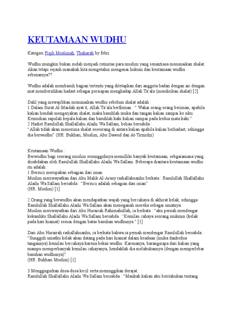 Keutamaan Thaharah Bersuci Keluargadakwah Com
