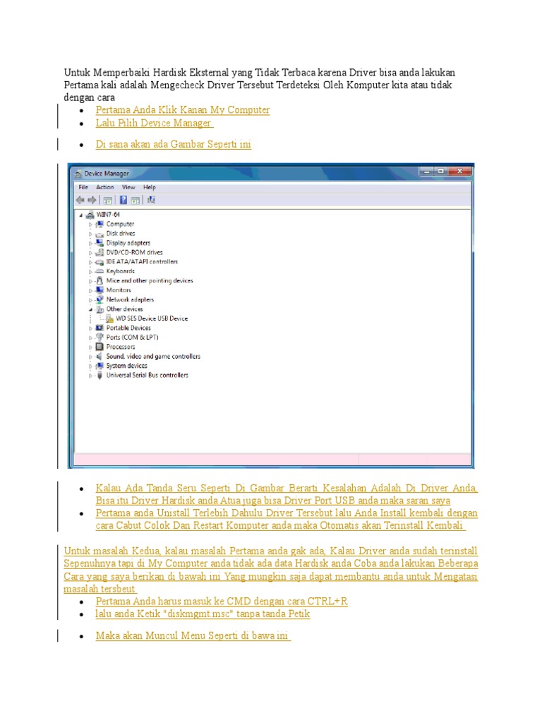Mengatasi Hardisk Eksternal Tidak Terbaca Di Windows 7 Dan