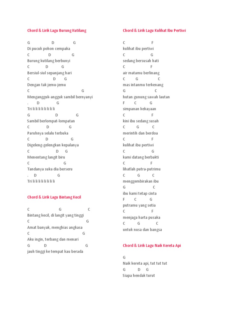Tribunwowcom lirik lagu dan kunci gitar lagu ibu pertiwi yang menjadi ost. C f kulihat ibu pertiwi c g sedang bersusah hati c f air matamu berlinang c g c mas intanmu terkenang. Semua lirik lagu dalam situs ini adalah milik pemilik sah masing masing sesuai dengan hak cipta nya.