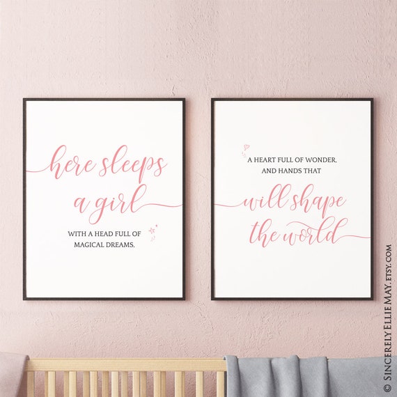 Here Sleeps A Girl Quote Blush Pink Newborn Baby Quotes Wall Art Printable Also Great As Young Girl Decor Or Baby Shower Gift 40254
